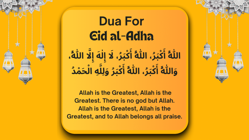 31 Aug Dua Dua for Eid al-Adha September 24, 2025 Posted by qiratequran1@gmail.com 0 comments Arabic: اللَّهُ أَكْبَرُ، اللَّهُ أَكْبَرُ، لَا إِلٰهَ إِلَّا اللَّهُ، وَاللَّهُ أَكْبَرُ، اللَّهُ أَكْبَرُ وَلِلَّهِ الْحَمْدُ English... Continue reading