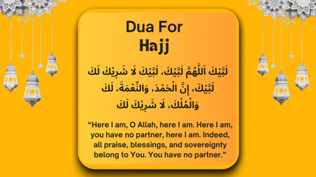 31 Aug Dua Dua for Hajj September 24, 2025 Posted by qiratequran1@gmail.com 0 comments Arabic: لَبَّيْكَ اَللّٰهُمَّ لَبَّيْكَ، لَبَّيْكَ لَا شَرِيْكَ لَكَ لَبَّيْكَ، إِنَّ الْحَمْدَ، وَالنِّعْمَةَ، لَكَ وَالْمُلْكَ، لَا ش... Continue reading