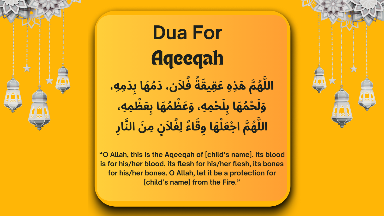 “O Allah, this is the Aqeeqah of [child’s name]. Its blood is for his/her blood, its flesh for his/her flesh, its bones for his/her bones. O Allah, let it be a protection for [child’s name] from the Fire.”